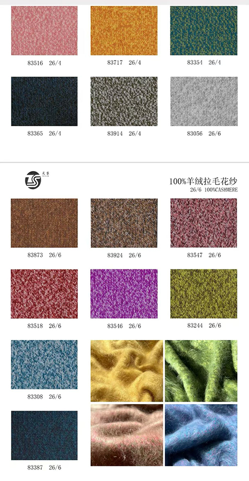 天塞纺织生产的羊绒拉毛纱线具有诸多特点。在原料方面,精选细度15 - 16.5μm、长度34 - 38mm的山羊绒原绒,纤维韧性强、断裂强度≥3.5cN/dtex,含粗率≤0.3%,短绒率(≤20mm)≤12%。这样严格的原料筛选标准,确保了拉毛时纤维不易断裂,能顺利形成连续绒面且不影响触感。在成分配比上,涵盖纯羊绒型、高比例混纺型和实用混纺型。纯羊绒型搭配特定纺纱工艺增强纤维抱合力,适配中端以上成衣;高比例混纺型提升纱线强度和抗起球性,降低掉绒风险;实用混纺型优化耐磨性和织造稳定性,适配大批量生产。